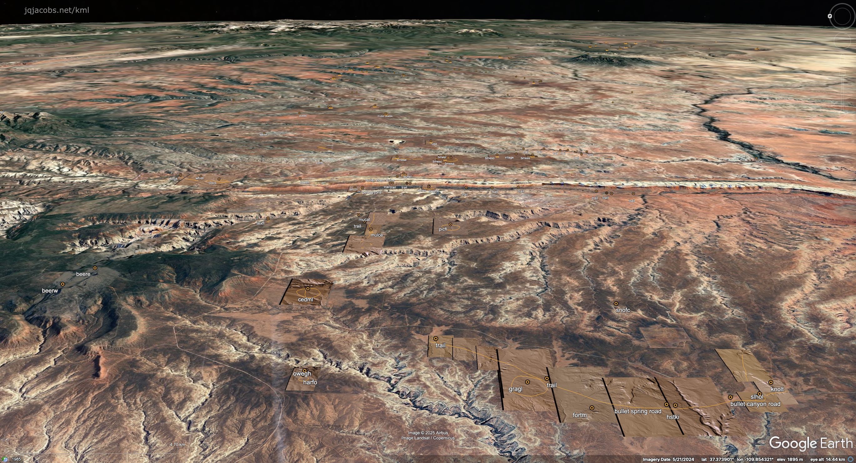 2025.10.18 - After catching up with Amazonia surveys a month ago, now over 1,500 geoglyphs placemarked, and updating online files my attention shifted to the American Southwest. Large circular monuments in the Northern San Juan region, the Four Corners area of the American Southwest, are visible using online lidar viewers. These circular earthworks came to my attention via an article in American Archaeology a decade ago featuring Holmes Group lidar produced by Richard Friedman. The earthworks are often termed loop roads. I consider "road" interpretative implying a function, so to avoid naming with interpretations I simply call them loops. I considered using geoglyphs, but prefer a distinct classification. I documented several large loops a few years ago and results of their site-to-site relationships motivated finding and placemarking more loops.