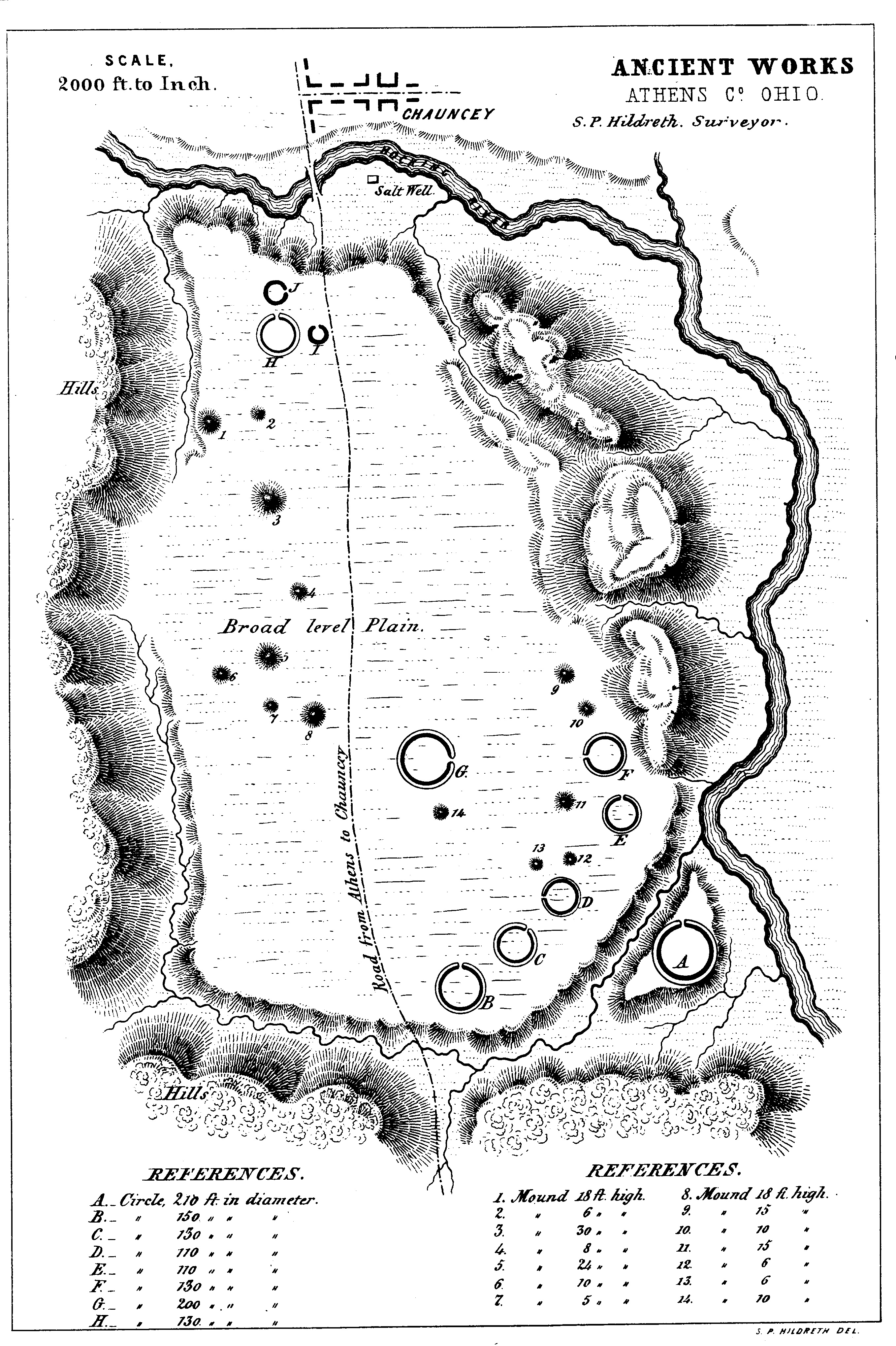 | Possible Geodetic Properties and Relationships of Some Monumental Earthworks in the Middle Ohio Valley. A Preliminary Inquiry ©2003 by James Q. Jacobs Squier and Davis Drawings The Plains Ancient Works, Athens County 2716 x 4078 pixels |