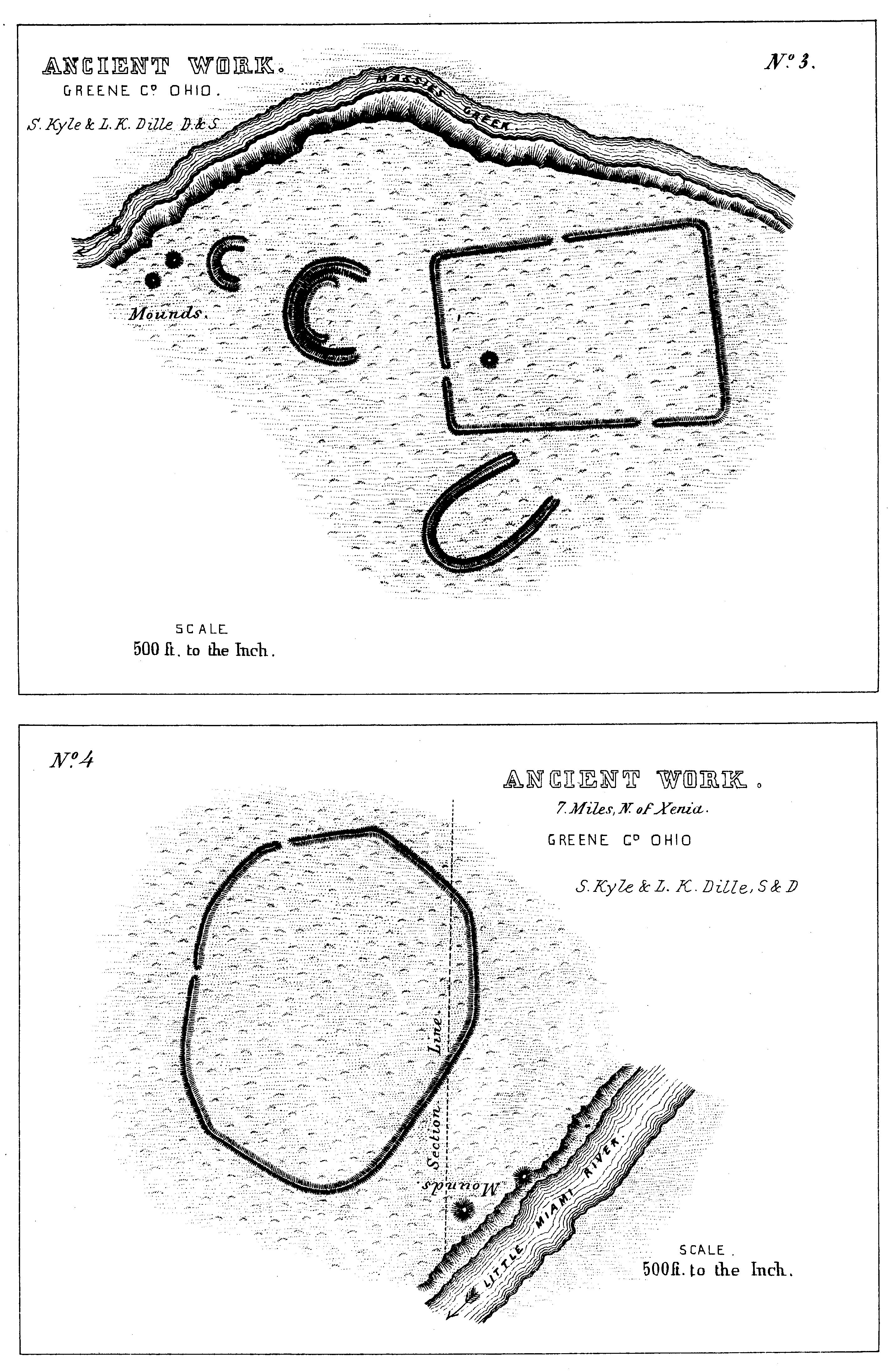 | Possible Geodetic Properties and Relationships of Some Monumental Earthworks in the Middle Ohio Valley. A Preliminary Inquiry ©2003 by James Q. Jacobs Squier and Davis Drawings Ancient Works, Massies Creek and Xenia, Greene County 2849 x 4372 pixels |
